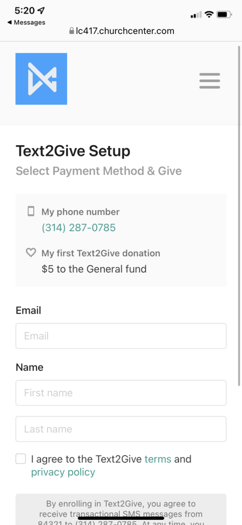 Text to Give (Coming Soon).