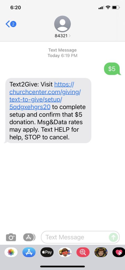 Giving has never been easier! You can give anytime, anywhere by simply texting the amount you’d like to give to our number. It’s safe, secure, and convenient—your personal information is always protected and never shared.